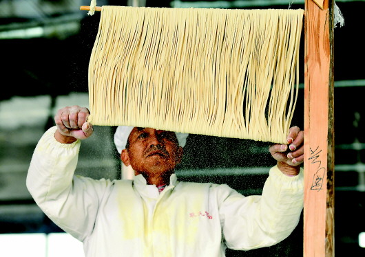 正因有如此多道精细缺一不可的工序,造就了“面细能穿针,空心有韧性”的宫面。严成敏说,宫面虽细却耐煮,久煮而不烂,久放而不糟,吃起来十分筋道,口感爽滑。