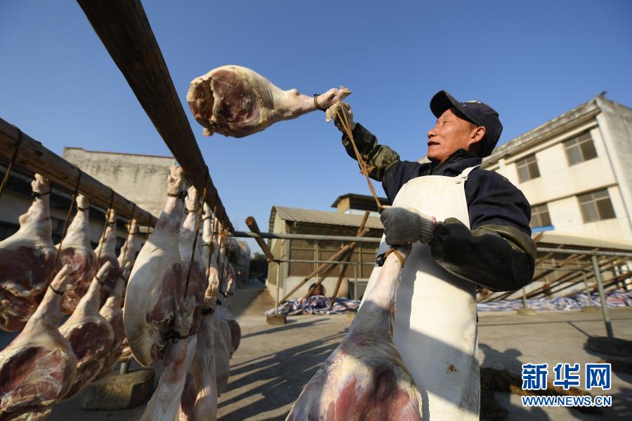 传统上,金华火腿从11月开始腌制,元旦前后进入洗晒高峰,经历半年以上发酵方可成熟上市。该火腿厂每年可生产火腿七八万个,今冬晴天较多,负责人何松林说:“火腿经日晒会发酵得更好,我对今年的产品很期待。”