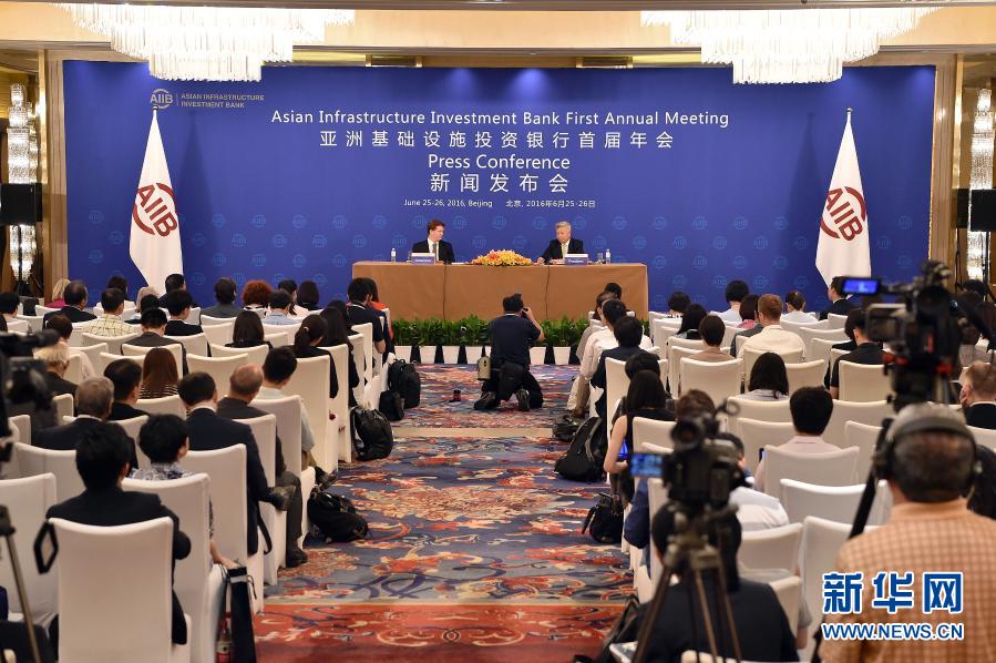 亚洲基础设施投资银行首届年会在北京举行新闻发布会(2016年6月25日摄)。新华社记者 李鑫 摄