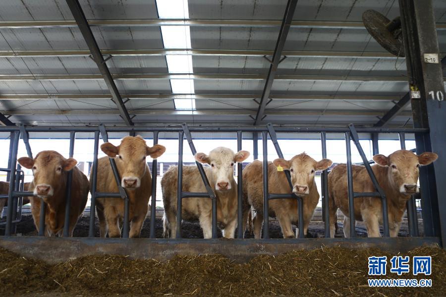 泌阳县夏南牛原种场的“无角夏南牛”(1月13日摄)。