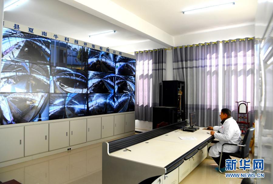在泌阳县夏南牛原种场,祁兴磊科研团队的研究员林凤鹏在办公室远程监测牛群(1月14日摄)。