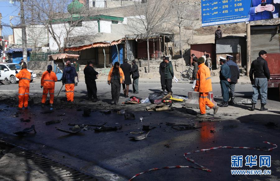 1月16日,在阿富汗首都喀布尔,工作人员在炸弹袭击现场工作。阿富汗警方16日证实,首都喀布尔当天上午发生一起路边炸弹袭击,造成2名警察死亡、1名警察受伤。新华社发(赛义德摄)