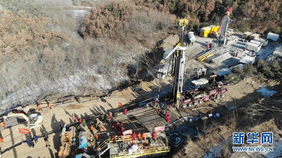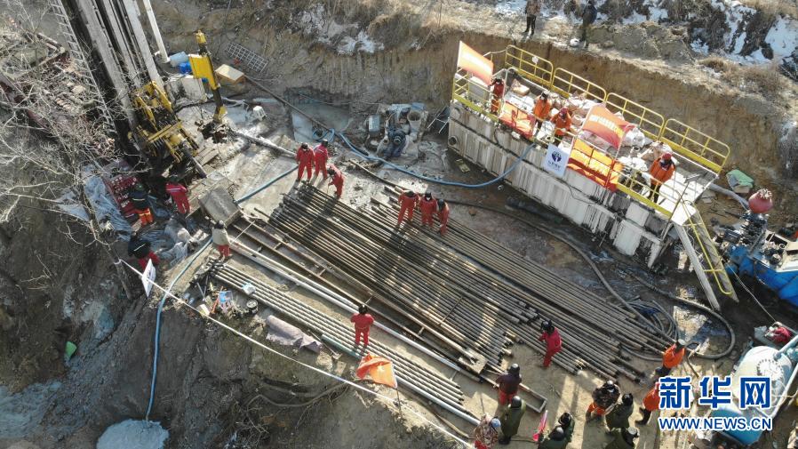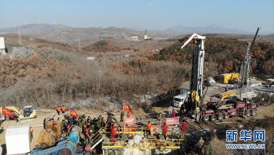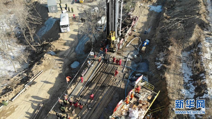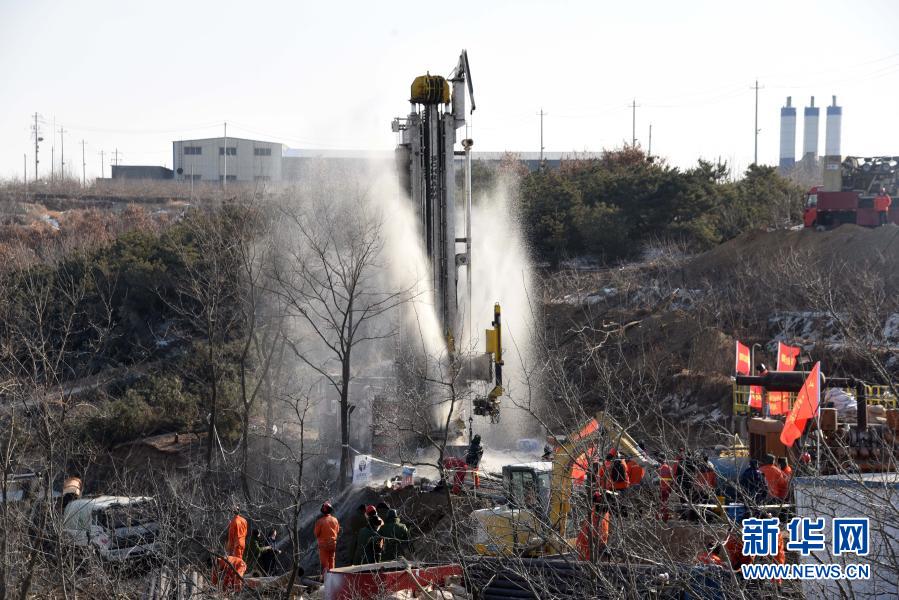 1月17日,救援人员在全力打通钻孔。新华社记者 王凯 摄