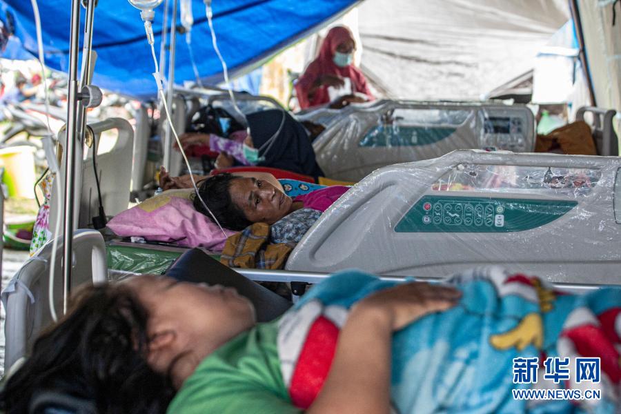 1月17日,在印度尼西亚西苏拉威西省首府马穆朱,受伤的人们卧床休息。新华社发(奥潘 摄)