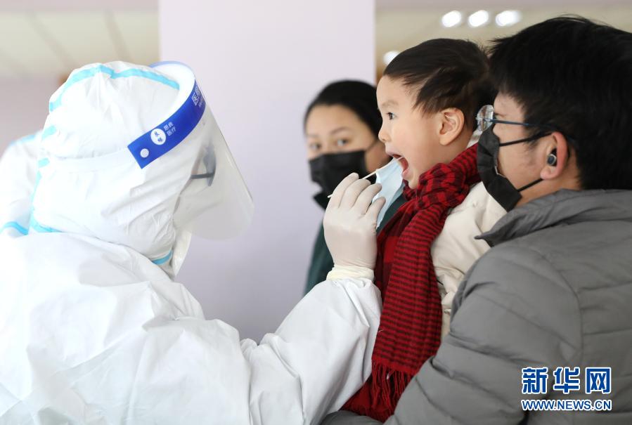 1月5日,在沈阳市皇姑区淮河街一处核酸检测点,医务人员为一名小朋友进行核酸检测。新华社记者 姚剑锋 摄