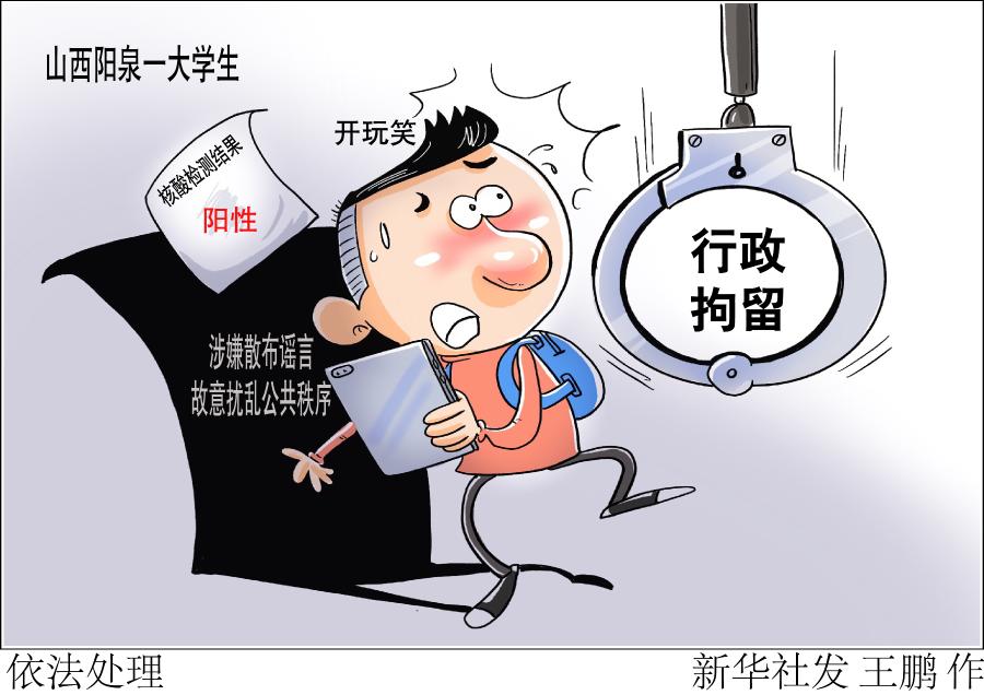 新华社太原1月18日电(记者魏飚)记者从山西省阳泉市公安局获悉,近日,山西阳泉一大学生为开玩笑,把核酸检测结果改为阳性被行政拘留。