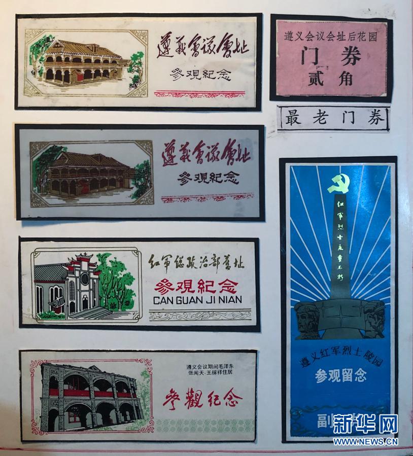 这是2021年1月11日拍摄的杨敏志收藏的遵义会议会址早期门票,右上角为杨敏志收藏的遵义会议会址最早的门票。新华社记者 李惊亚 摄