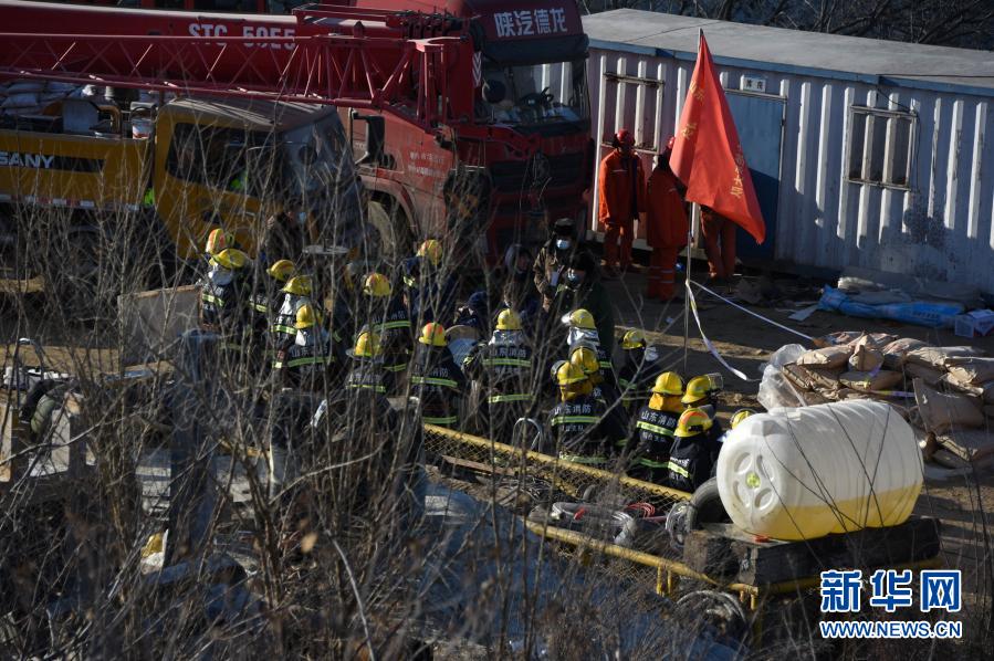 1月17日,救援人员在山东笏山金矿爆炸事故救援现场救援。新华社记者 王凯 摄