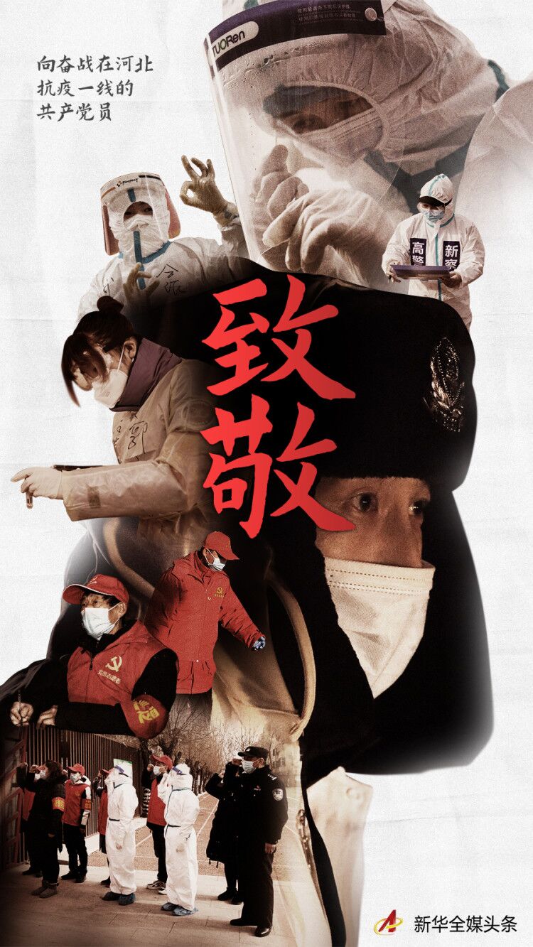 新华社石家庄1月19日电 题:敬礼,党旗!致敬,共产党员!——记奋战在河北抗疫一线的共产党员