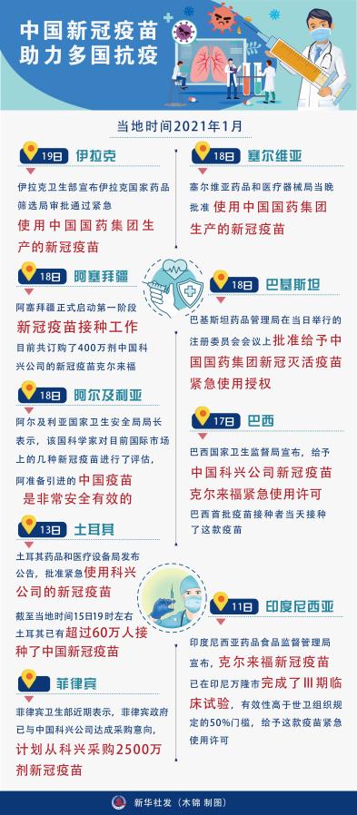新华社北京1月19日电 综述:中国新冠疫苗助力多国抗疫