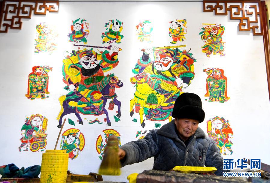 临近春节,河南省开封市朱仙镇的木版年画作坊抓紧制作年画,为新春市场做准备。朱仙镇木版年画制作工序讲究,具有造型夸张、线条粗犷、色彩艳丽的艺术特色,2006年被列入第一批国家级非物质文化遗产名录。