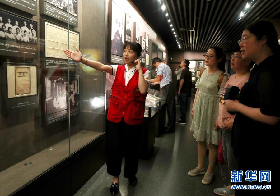 1月20日,“党的诞生地”志愿服务队队员、上海大学的学生在中共一大会址纪念馆为观众进行讲解(2019年6月22日摄)。新华社记者 刘颖 摄