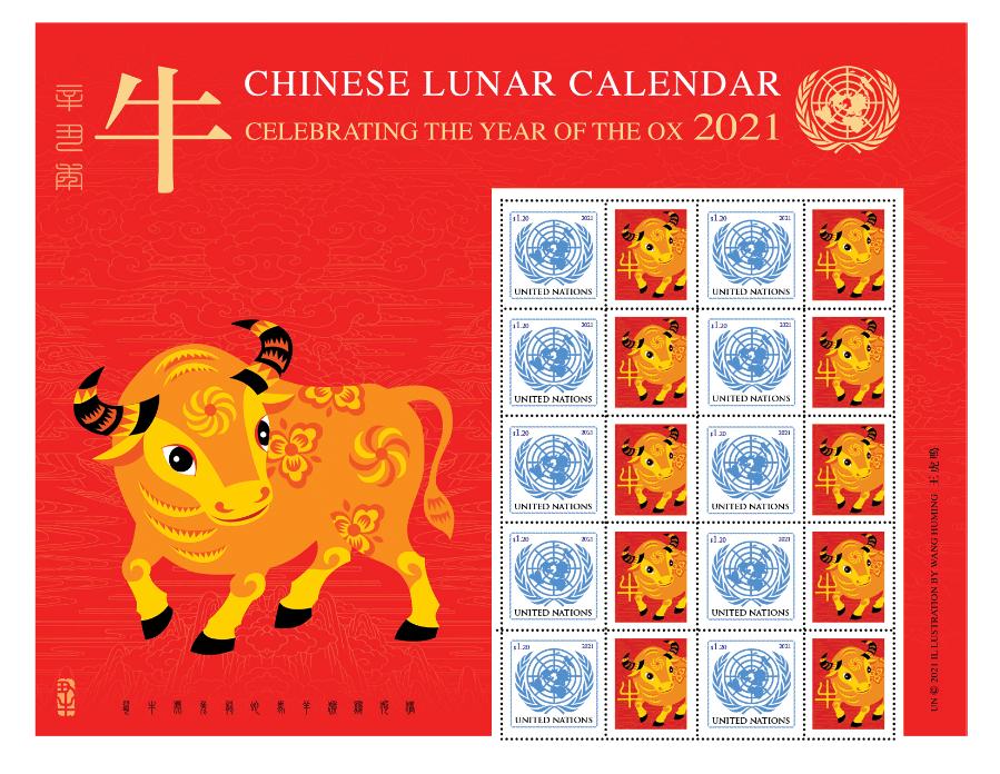 这是由联合国邮政管理局提供的中国农历辛丑年特别版邮票版张海报。新华社发(联合国邮政管理局供图)