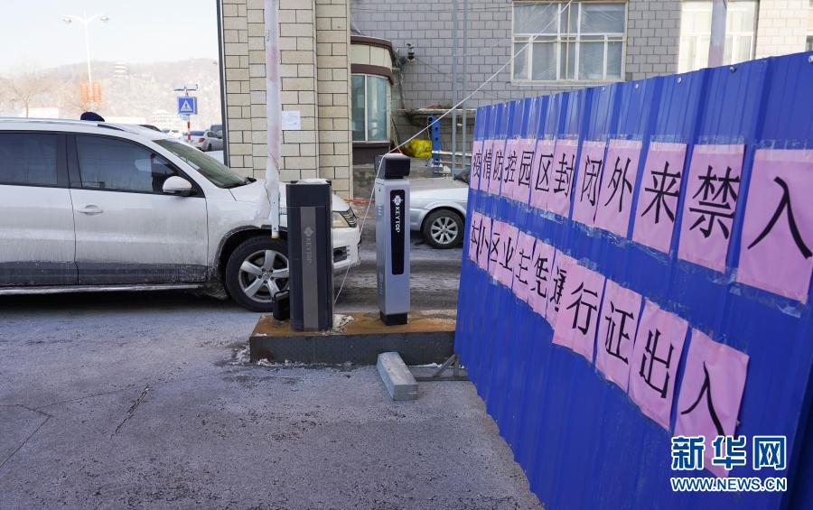 吉林通化市东昌区一小区入口张贴着外来人员禁入的告示(1月19日摄)。新华社记者 许畅 摄