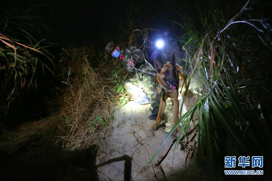 武警广东总队执勤第三支队官兵携带警犬从作案现场出发对嫌疑人进行追踪搜索(1月1日摄)。新华社发(廖键 摄)