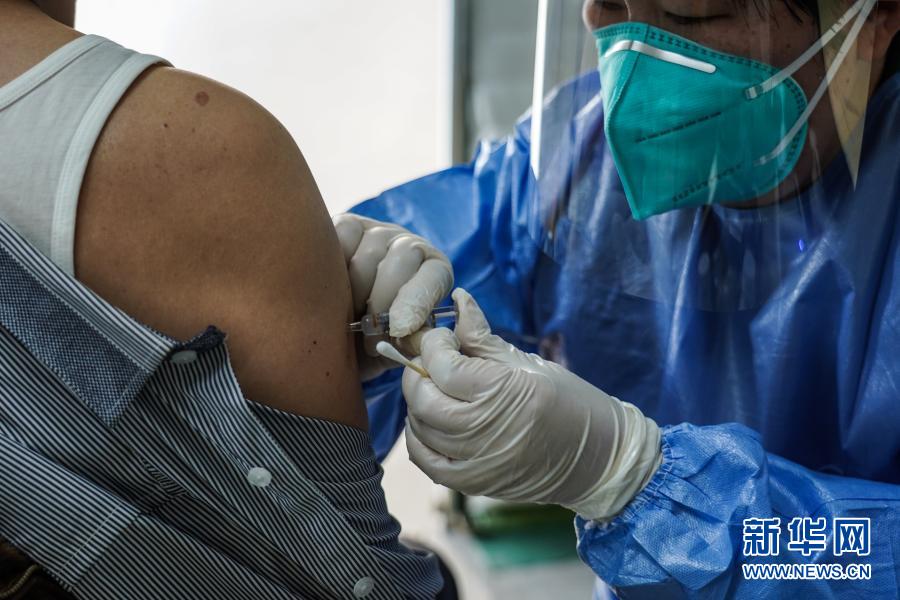 1月23日,在北京大兴体育中心内,市民进行新冠疫苗第二剂接种。新华社记者 彭子洋 摄