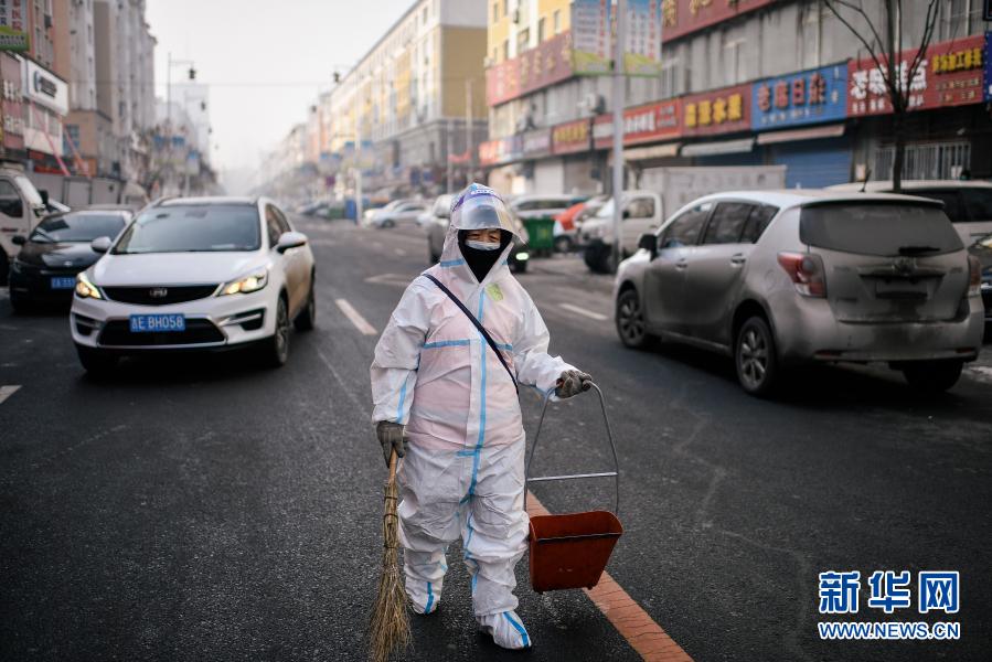 通化市东昌区环卫工人在清扫街路(1月24日摄)。新华社记者 许畅 摄