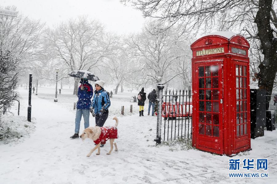 1月24日,人们在英国伦敦的大雪中行走。当日,英国伦敦迎来降雪。新华社记者韩岩摄