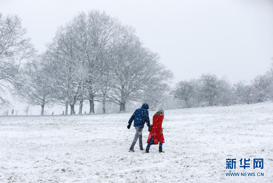 1月24日,人们在英国伦敦的大雪中行走。新华社记者韩岩摄