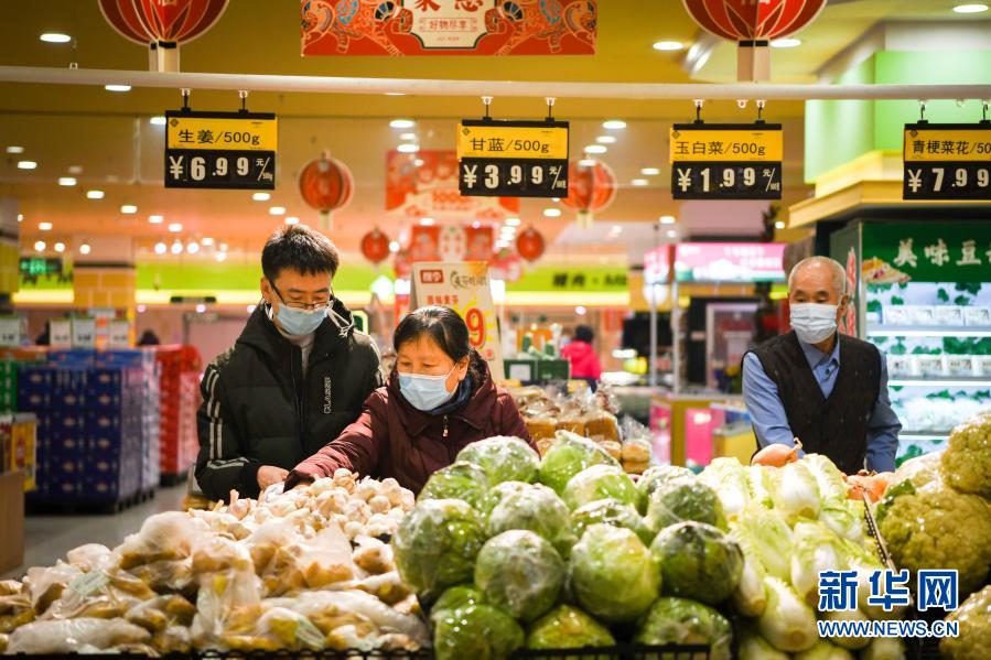 1月25日,消费者在哈尔滨市香坊区一家大型连锁超市购物。