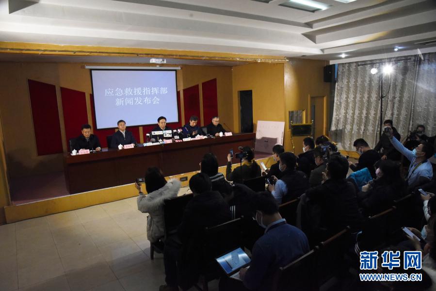 1月25日拍摄的山东笏山金矿事故应急救援指挥部新闻发布会。新华社记者 王凯 摄