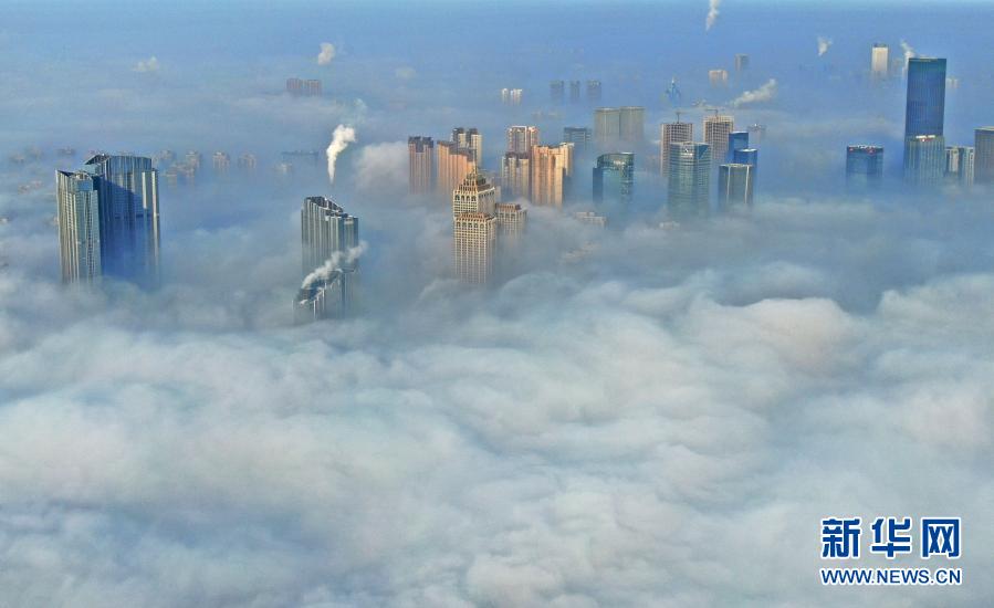 这是1月26日在沈阳市浑南区拍摄的市内雾景(无人机照片)。新华社记者 杨青 摄