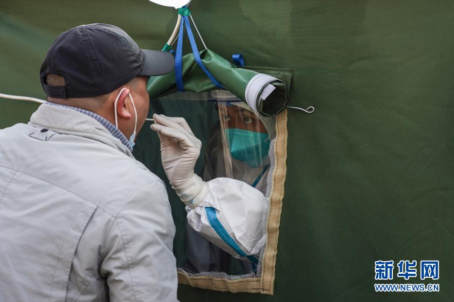 1月26日,北京大兴区亦庄镇一处核酸检测点,医护人员为参加核酸检测的人员进行采样。新华社记者 彭子洋 摄