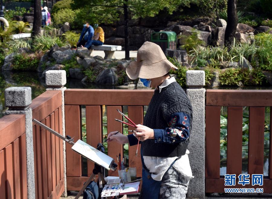 1月26日,戴口罩的市民在香港沙田公园里写生。新华社记者 卢炳辉 摄