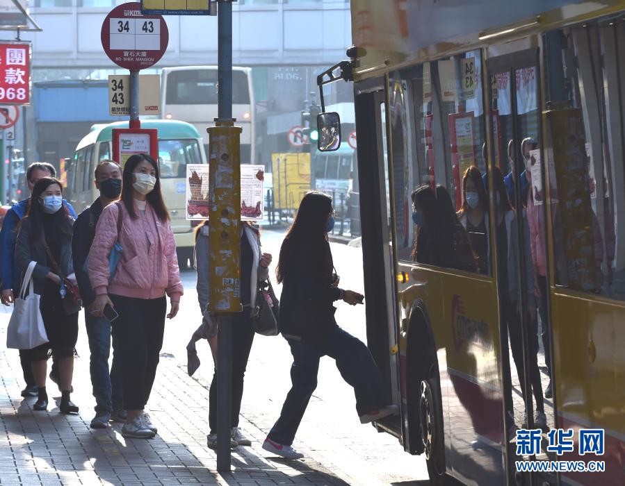 1月26日,戴口罩的香港市民排队搭乘巴士。新华社记者 卢炳辉 摄