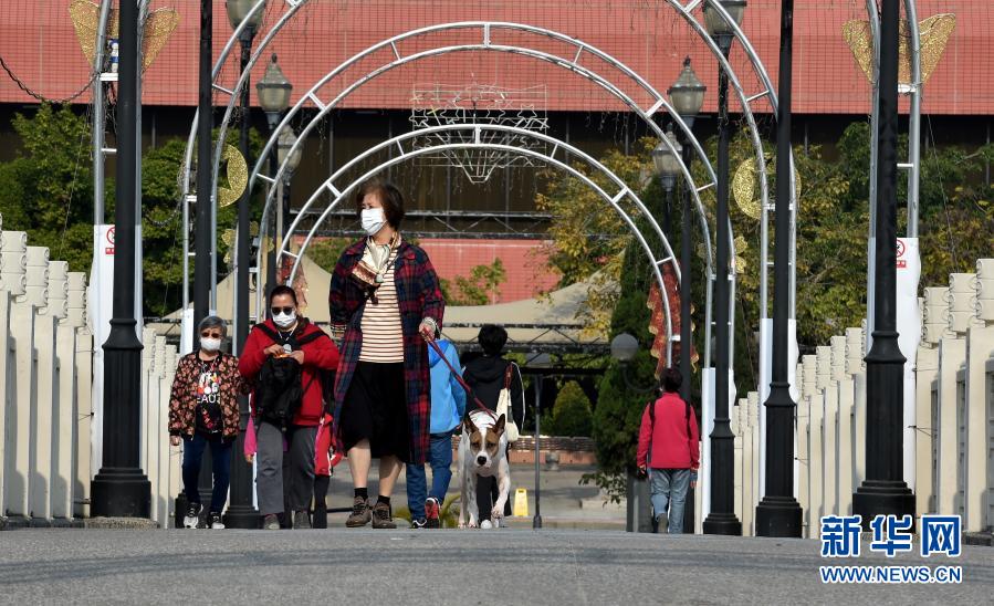1月26日,戴口罩的市民在香港沙田公园里散步。新华社记者 卢炳辉 摄
