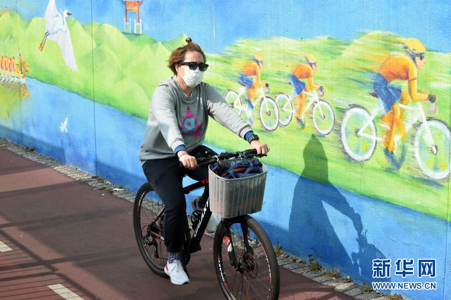 1月26日,戴口罩的市民在香港沙田骑行。新华社记者 卢炳辉 摄