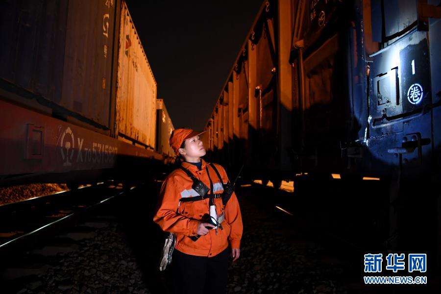 1月25日,在福建上杭火车站,调车员丘丽榕核对车辆号码。新华社记者姜克红摄