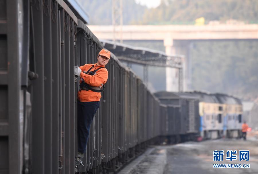 1月25日,在福建上杭火车站,调车员丘丽榕在列车推进时观察前方线路。新华社记者姜克红摄