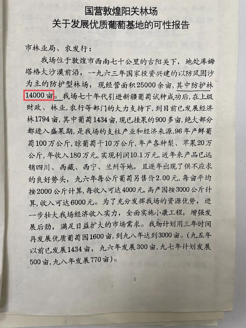 1月20日,《经济参考报》刊发《万亩沙漠防护林被毁 敦煌防沙最后屏障几近失守》披露:国营敦煌阳关林场生态林面积1.33万亩,近年来持续大面积“剃光头”式砍伐防护林,用以发展葡萄生产,引发广泛关注。