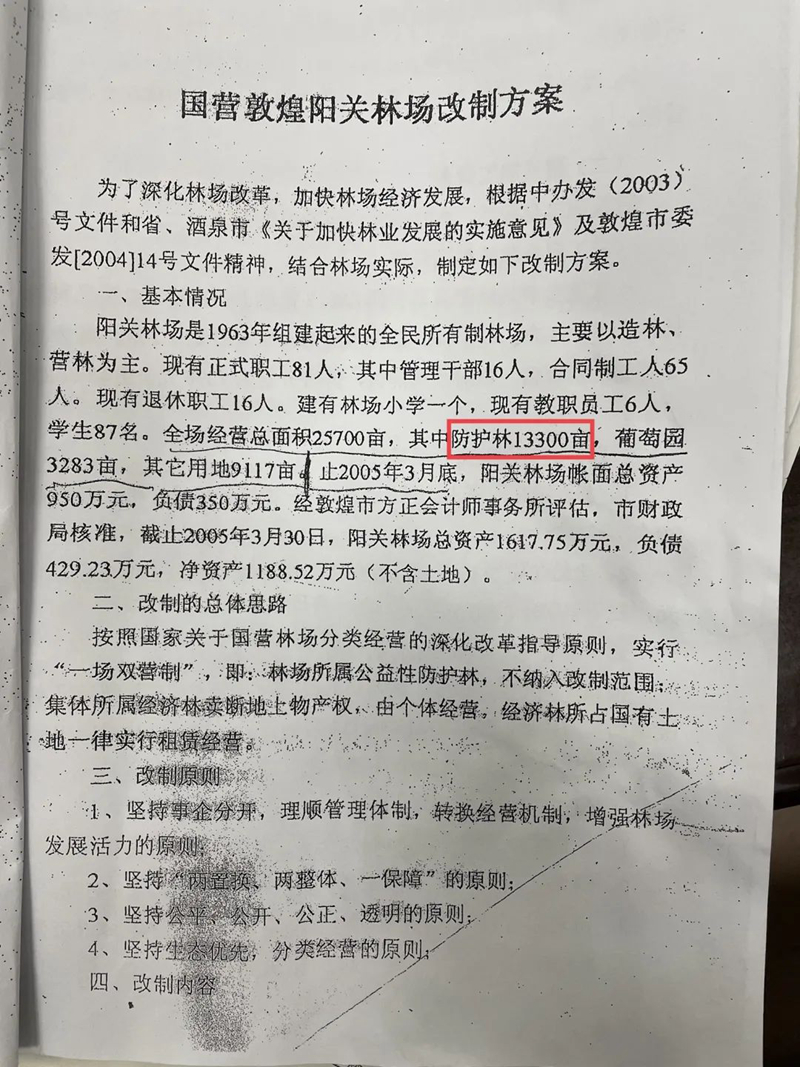 图为2005年敦煌市林业局发布的阳关林场改制文件