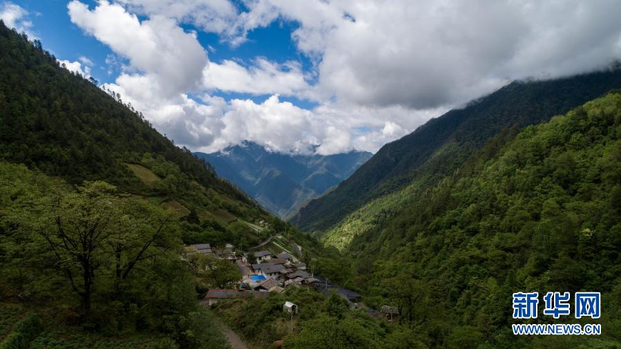 这是云南迪庆藏族自治州香格里拉滇金丝猴国家公园一景(无人机照片,2020年5月23日摄)。新华社记者 胡超 摄