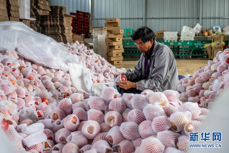 云南省会泽县娜姑镇牛泥塘村童盟种植专业合作社的农民在分拣石榴(2020年9月29日摄)。新华社记者 胡超 摄
