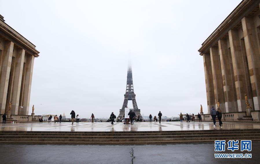 1月27日,人们在法国巴黎埃菲尔铁塔附近的特罗卡德罗广场休闲。