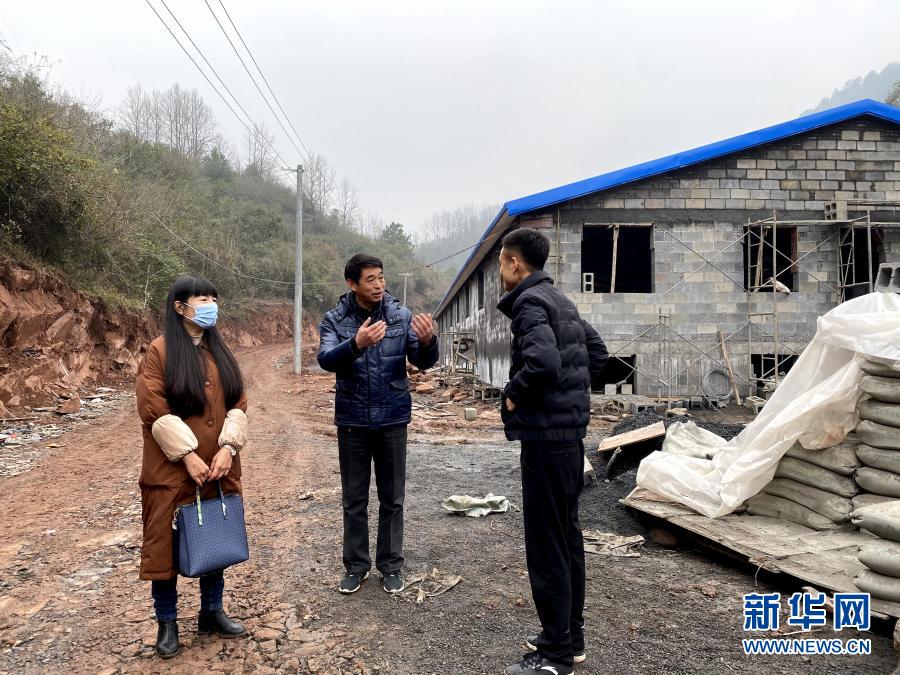 1月27日,驻麻溪口村帮扶工作队队长段吉广(中)在村内协调生猪养殖场建设工作。新华社记者 柳王敏 摄
