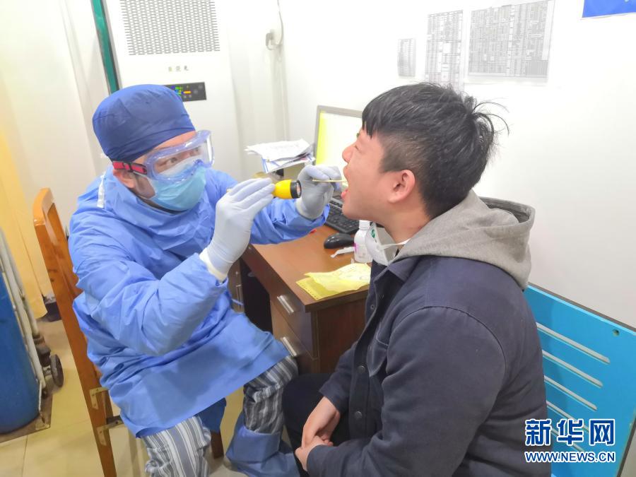 在上海中医药大学附属岳阳中西医结合医院,谢国群医生在发热门诊值守(2020年2月26日摄)。新华社发