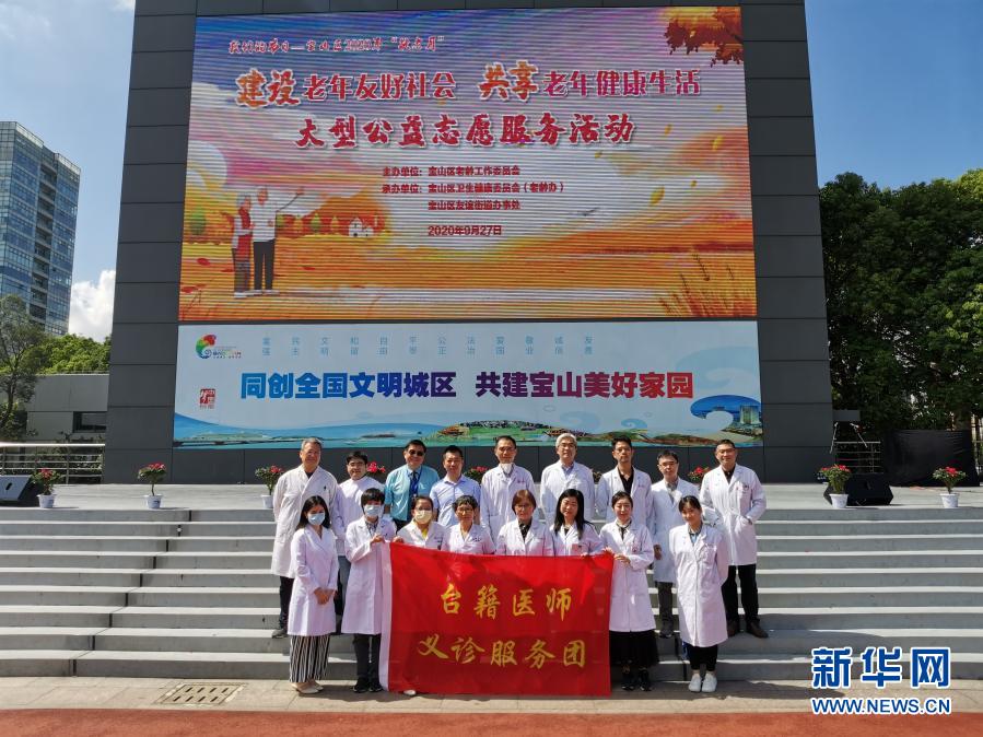 这是“台籍医师义诊服务团”合影(2020年9月27日摄)。由谢国群(后排左四)牵头共召集沪上20多名台籍医卫专家为上海市宝山区辖区内老年人义诊。新华社发