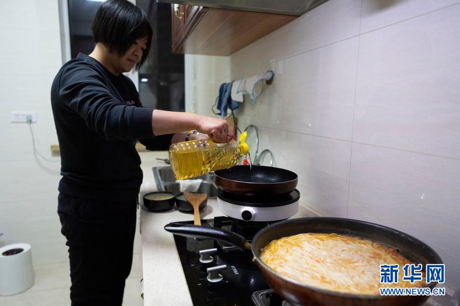1月30日夜,在哈尔滨市南岗区,阚振华在租住的民宿中做晚饭。新华社记者 谢剑飞 摄