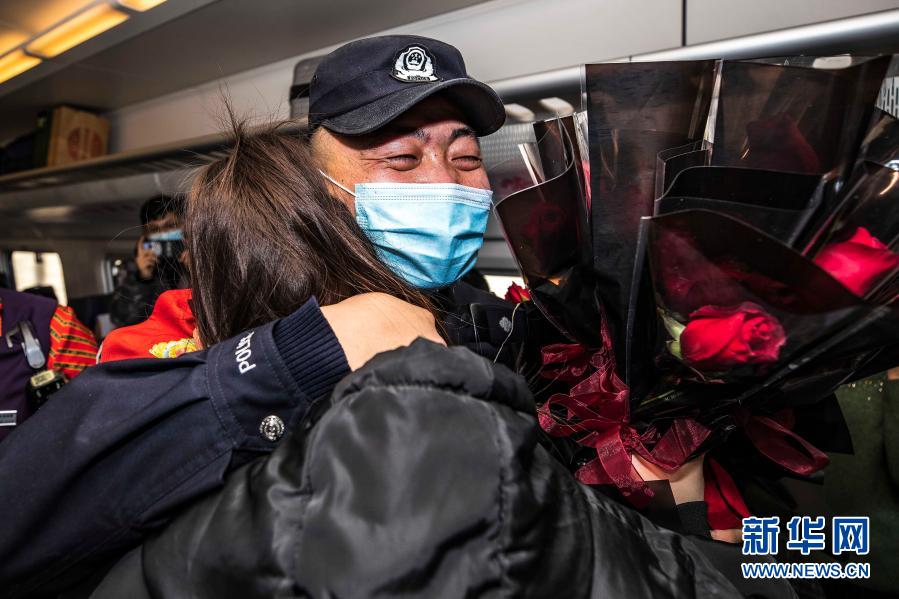 求婚成功后,张建志和赵琳乐幸福相拥(1月30日摄)。新华社发(李国贤 摄)