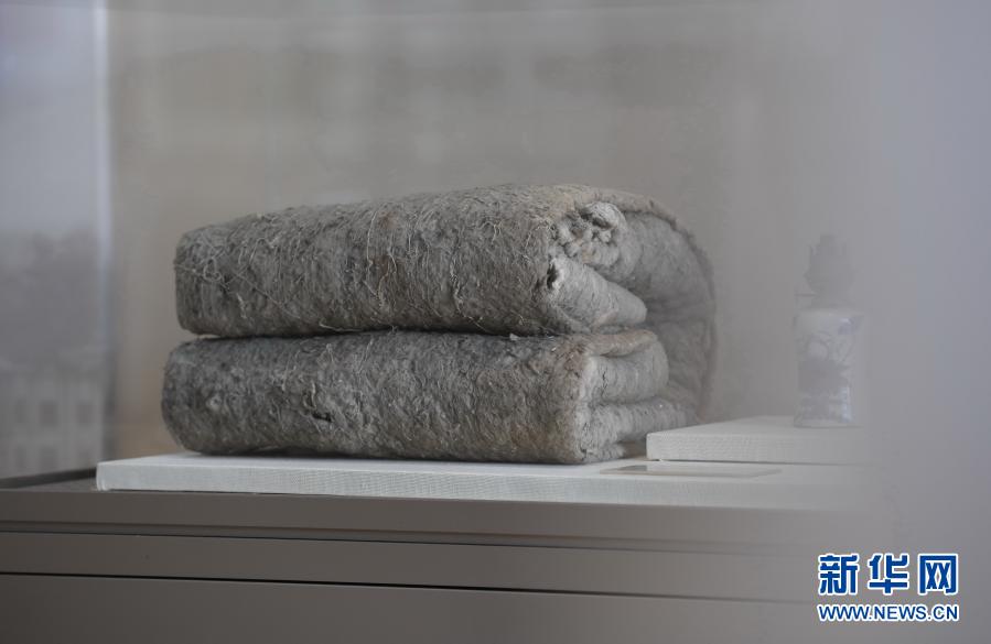 1月25日拍摄的古田会议纪念馆陈列的旧棉絮。新华社记者林善传摄