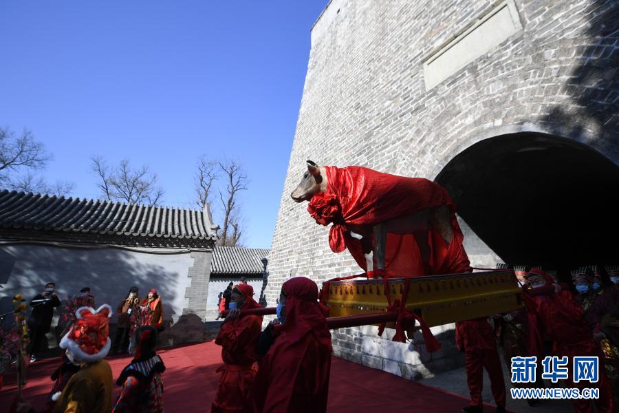 立春将至,北京东城区建国门街道在古观象台举办“风车迎春,鞭打春牛”民俗活动,迎接春天的到来。