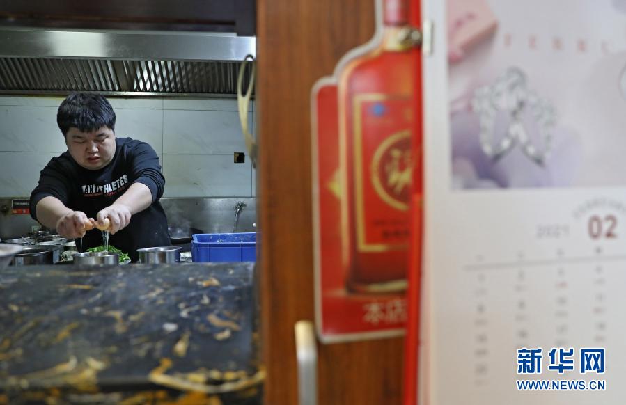 2月2日晚,厨师王师傅在后厨为顾客做菜。新华社记者 姚剑锋 摄