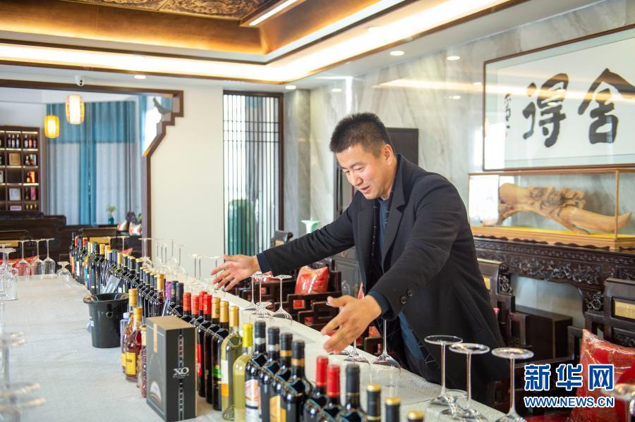 酿酒师李财在介绍葡萄酒产品(1月6日摄)。新华社记者 唐如峰 摄