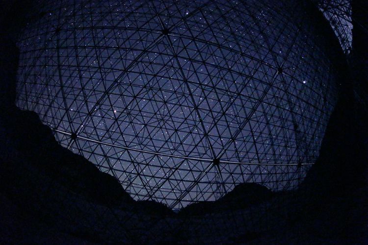 从“中国天眼”底部看星空。(中科院国家天文台提供,“中国天眼”建设期间拍摄)