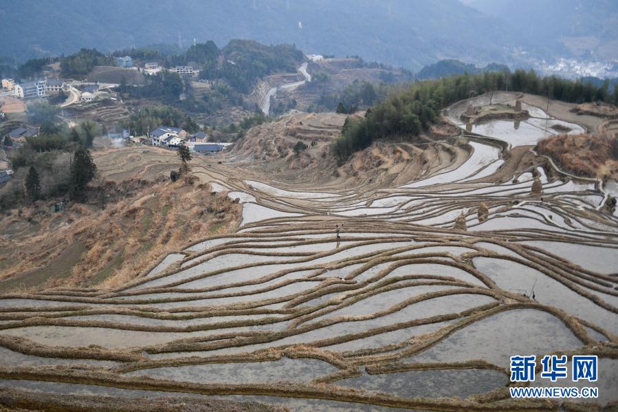 立春时节,位于浙江省丽水市云和县崇头镇的云和梯田呈现别样的韵味。