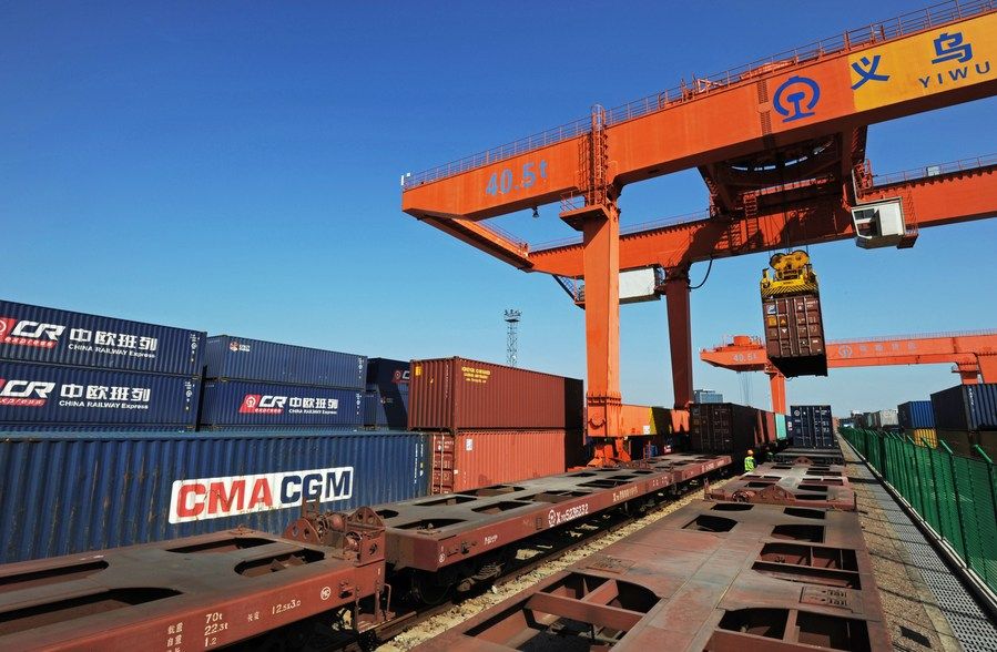 2014年11月18日,中欧班列(义乌)——“义新欧”从义乌西站始发,途经哈萨克斯坦、俄罗斯、白俄罗斯、波兰等国家,历时21天,最终抵达西班牙首都马德里。这条全长1.3万公里的中欧班列铁路线,打开了义乌和欧洲经贸往来的新通道。